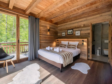 Lumineuse et raffinée, la chambre Montagne Étoilée offre un confort haut de gamme dans une atmosphère paisible. Sa salle d’eau privative, moderne et élégante, allie confort et bien-être. Profitez de son accès direct au balcon pour savourer votre brunch tout en admirant un panorama époustouflant sur les montagnes enneigées. Chaque détail a été pensé pour vous offrir un moment d’évasion et de sérénité : linge de qualité, literie douillette et décoration sobre inspirée de la nature alpine.